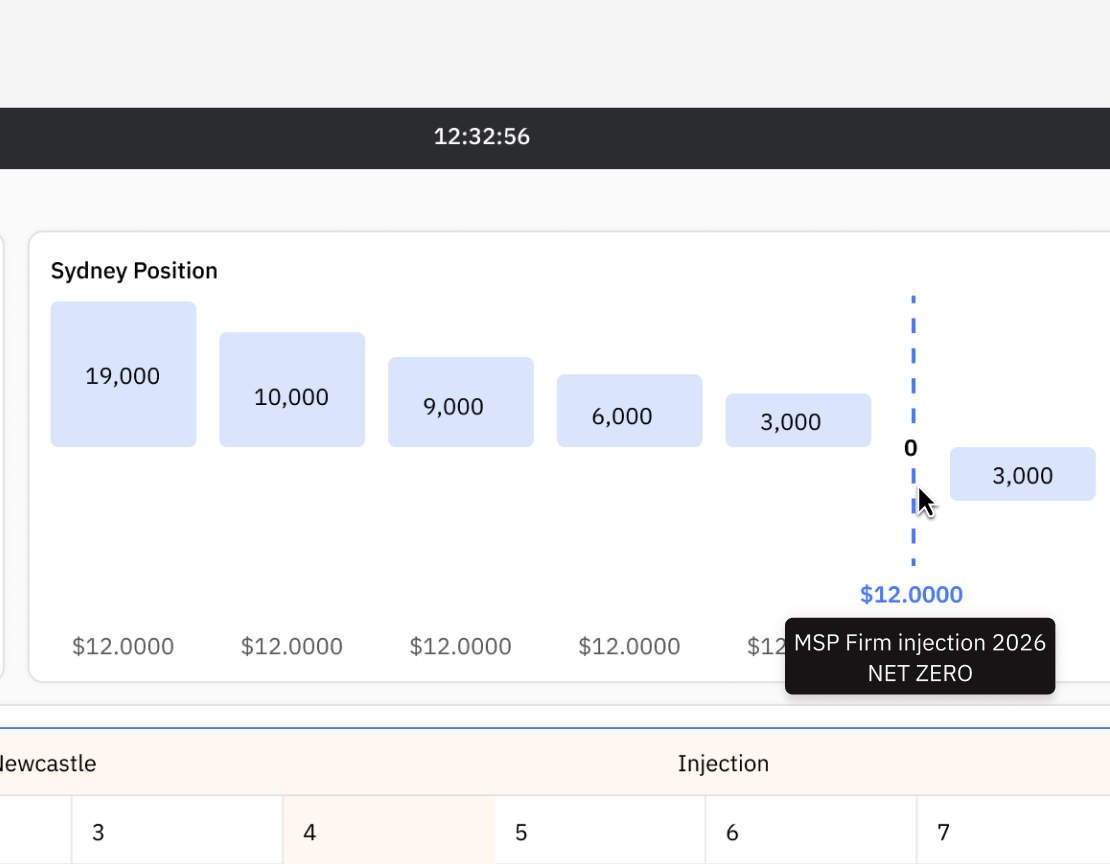 Net 0 trading visualisationDynamically recalculates after trader input to support main bidding activities in STTM markets.